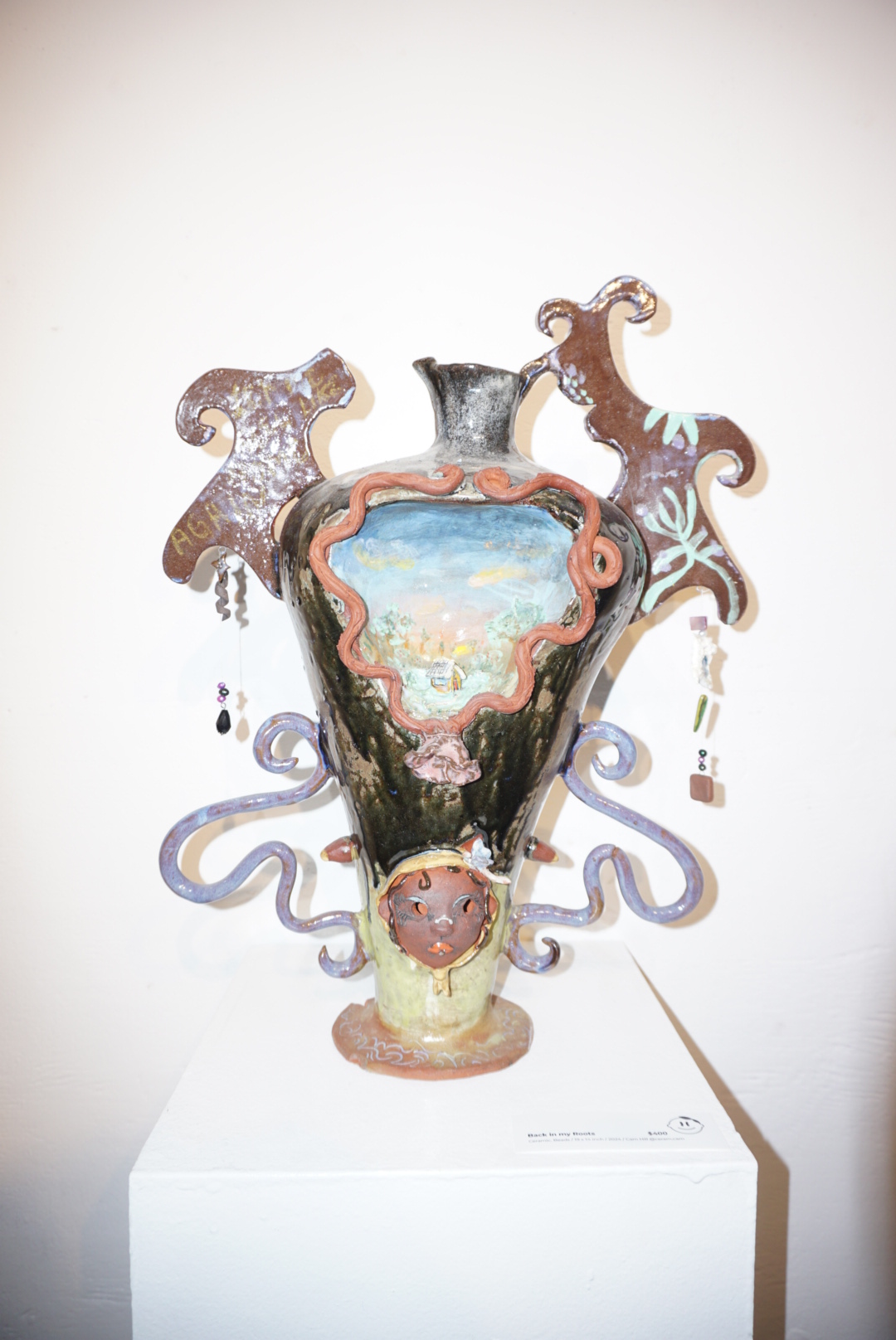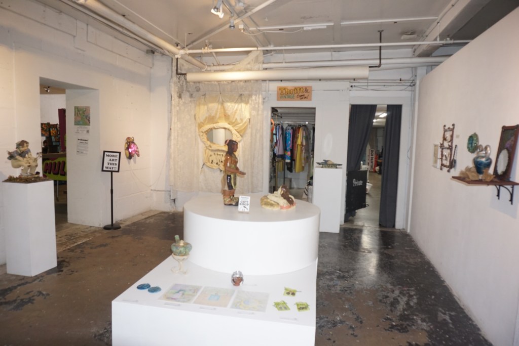 “Adorned Earththings” is a multi-media and interactive presentation, with the focus of ceramics, telling the story of queer friendships, aging, decomposition and memory. With nod to the sea, grandmas jewelry, and the fairytale connection to home, the show explores the ideal childhood view of adult-hood, from an adults perspective. The work is inspired by muck and the renewal of energy, tenderness, and the obsession of the natures gaze.